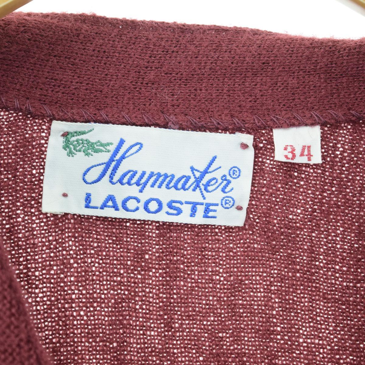 商品詳細ブランド・LACOSTE・ラコステ・特徴・ヴィンテージ・トラディショナル カジュアル・モデル/形状・HAYMAKER・アクリルニットカーディガン・素材・アクリル・色・エンジ系 バーガンディ・柄・ワンポイント・無地・生産国年代・70年代・サイズ・レディースS・表記サイズ:34・着丈:57cm・身幅:42cm・肩幅:33cm・袖丈:57cm・コンディション・B・カテゴリ・レディース・カーディガン・トップス・商品番号・eaa065496・取扱店・桃谷店・スタッフコメントLACOSTE HAYMAKER アクリルニットカーディガン / レディースS / 商品番号 eaa065496USEDですので使用感などございますが、まだまだご愛用していただけます。